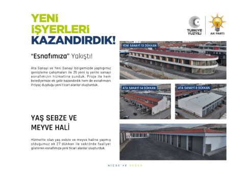 ek iş yerleri oluşturarak, halkımıza daha modern