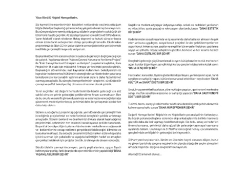 sunmayı amaçladık. Bu süreçte, hemşerilerimizin taleplerini, sürdürülebilir KÜLTÜR ve SANAT DOSTU BİR ŞEHİR”