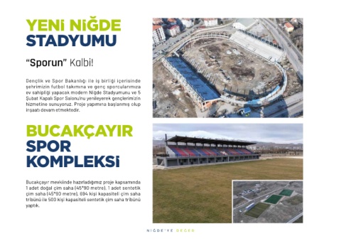 ev sahipliği yapacak modern Niğde Stadyumunu ve 5